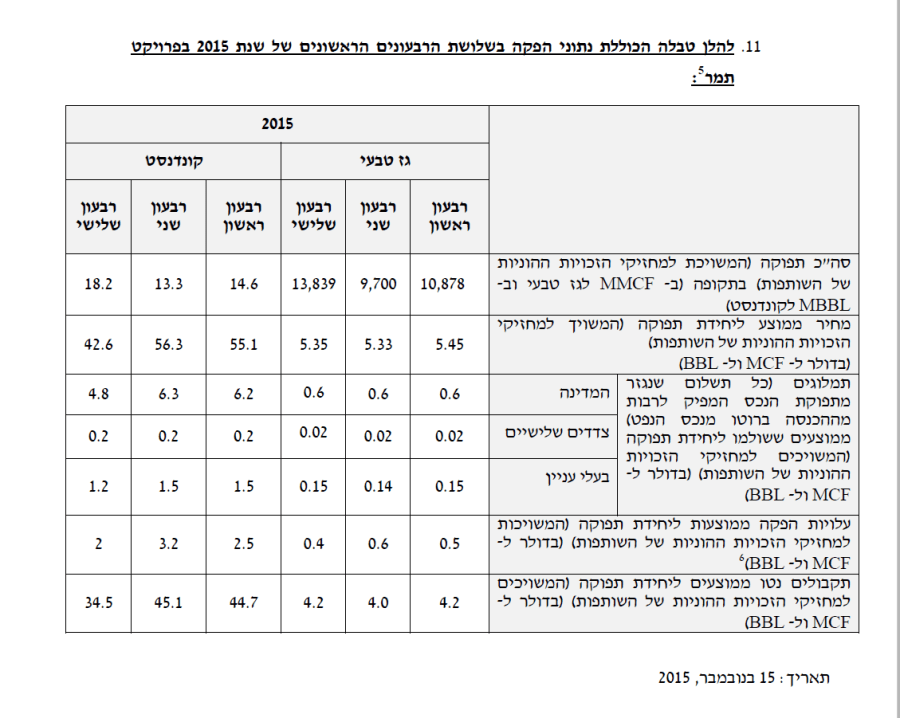 רווחים בגין מכירת קונדנסט באסדת תמר