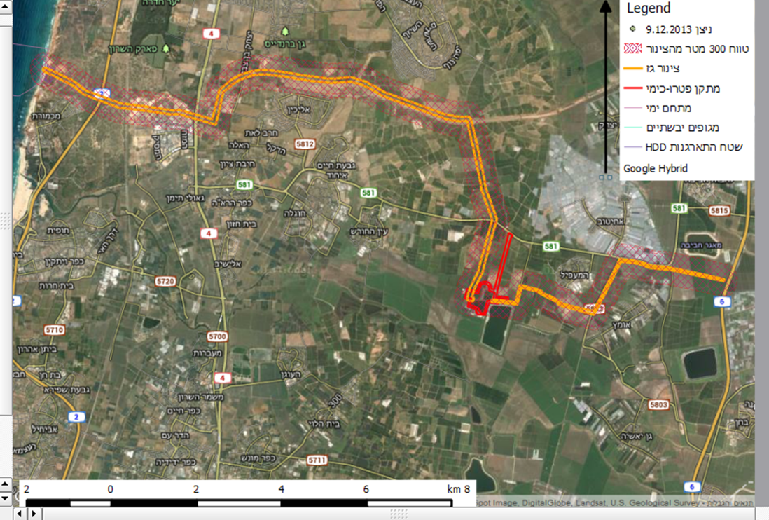 מפת תוואי הצינור והמתקן הפטרוכימי המתוכנן לפי תמ"א 37/ח.