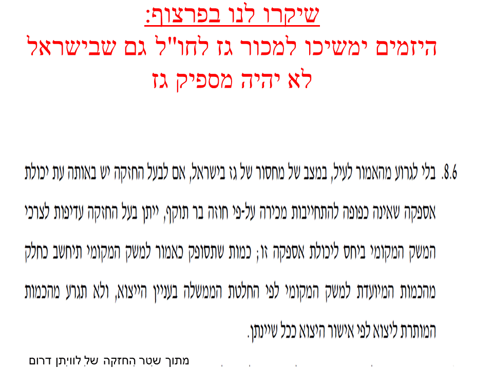 אז נכון שהבטיחו העדפה מלאה לישראל על פני מכירה לחו"ל. בסוף הלכו ועשו עשו בדיוק ההפך. הבטיחו לנו משהו אחד ובנתיים כתבו, בשקט בשקט, משהו אחר לגמרי.