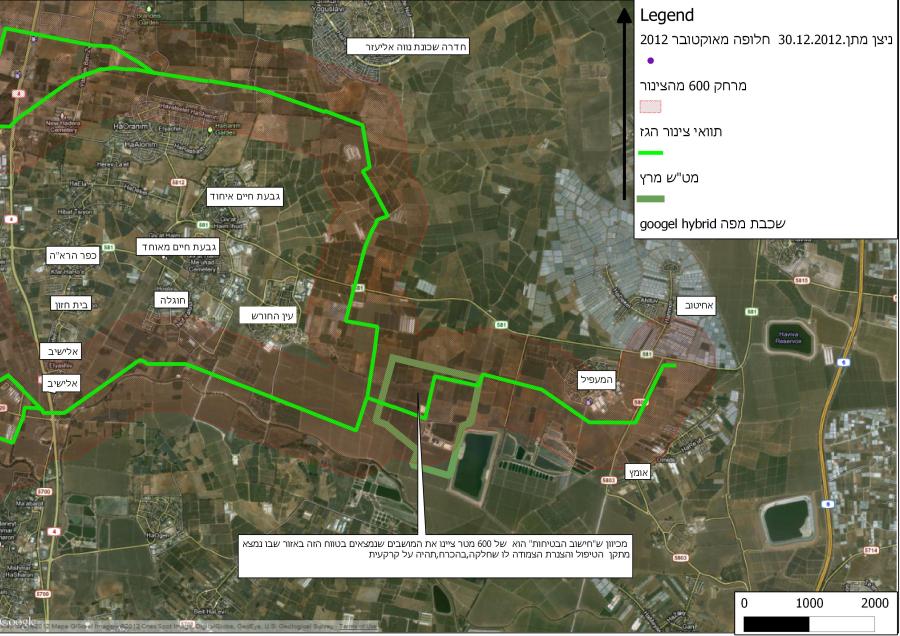 מפה של אזור מטש מרץ לפי טווח ביטחון 600 מטר מהצנרת