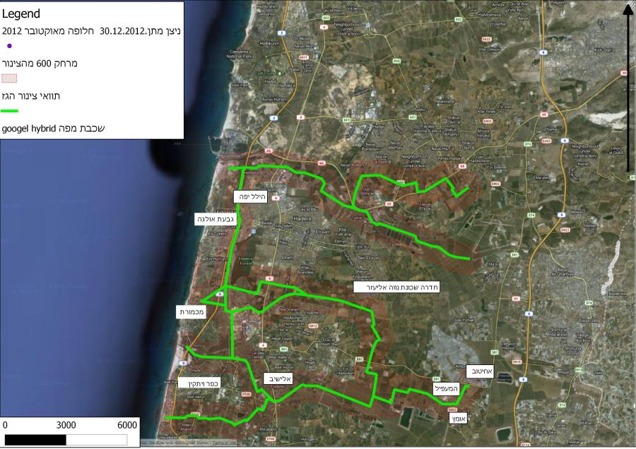 ישובים בסיכון בטווח 600 מטר מהצינור