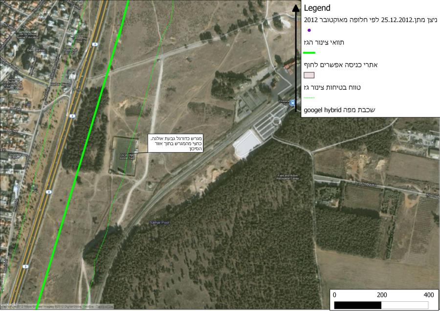 מגרש כדורגל גבעת אולגה בתוך טווח הבטיחות של הצינור