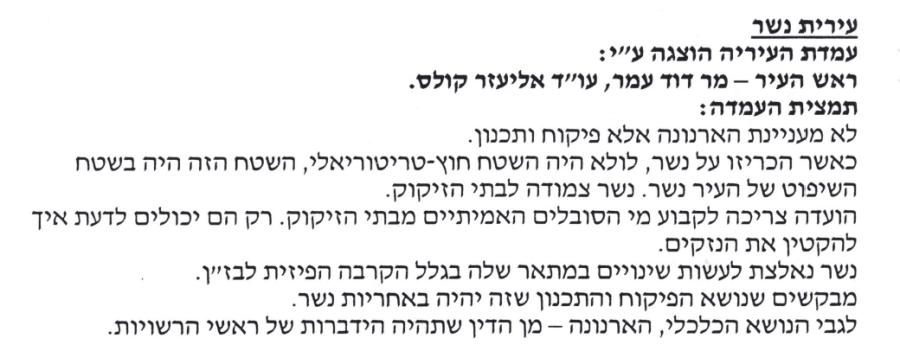 עיריית חיפה, מועצה אזורית זבולון, קריית אתא ועיריית נשר התחייבו כולן להשתמש בארנונה של בתי הזיקוק, כ-78 מיליון שקלים בשנה, כדי לצמצם את המפגעים שיוצרים בתי הזיקוק. העיר חיפה סובלת משיעור גבוהה של תחלואה בסוגים שונים של סרטן ובשיעור אסטמה הגבוהה בכפי שתיים מהממוצע הארצי. הגיע הזמן שראשי ארבעת הרשויות הללו (יונה יהב בחיפה, יעקב פרץ בקריית אתא, דב ישורון במעוצה אזורית זבולון ואבי בינמו בעיריית נשר) ייקחו אחריות על חיי התושבים שלהם וינצלו את סכום הכסף העצום המגיע מהארנונה למטרתו המקורית: טיפול במפגעי הסביבה שיוצרים בתי הזיקוק שהיו בבעלות מדינת ישראל, או לפחות ממשלת ישראל, ועברו הפרטה לידים של האחים עופר.