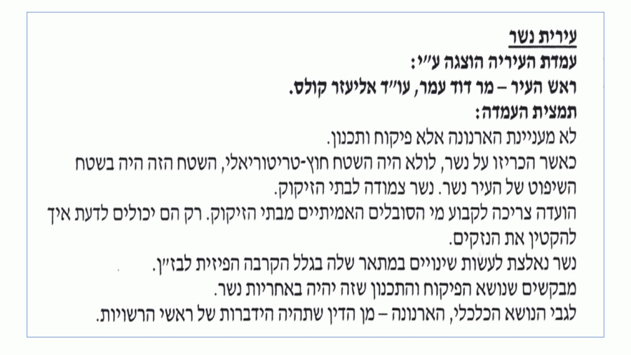 עיריית חיפה, מועצה אזורית זבולון, קריית אתא ועיריית נשר התחייבו כולן להשתמש בארנונה של בתי הזיקוק, כ-78 מיליון שקלים בשנה, כדי לצמצם את המפגעים שיוצרים בתי הזיקוק. העיר חיפה סובלת משיעור גבוהה של תחלואה בסוגים שונים של סרטן ובשיעור אסטמה הגבוהה בכפי שתיים מהממוצע הארצי. הגיע הזמן שראשי ארבעת הרשויות הללו (יונה יהב בחיפה, יעקב פרץ בקריית אתא, דב ישורון במעוצה אזורית זבולון ואבי בינמו בעיריית נשר) ייקחו אחריות על חיי התושבים שלהם וינצלו את סכום הכסף העצום המגיע מהארנונה למטרתו המקורית: טיפול במפגעי הסביבה שיוצרים בתי הזיקוק שהיו בבעלות מדינת ישראל, או לפחות ממשלת ישראל, ועברו הפרטה לידים של האחים עופר.