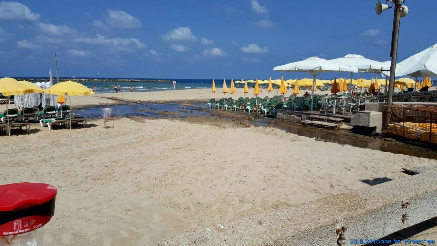 התמונות הללו צולמו ב- 23.8.2016 בחוף הרחצה הצמוד ל- "רויאל ביץ'" בתל-אביב-יפו. מבדיקות שנערכו התגלה שבנגר היה ריכוז גבוה של חיידקים המאפיינים ביוב אנושי. חשיפה לפתוגניים אלו עלולה לגרום לשלשולים וחום גבוה ביחוד אצל ילדים. מצער שחלק מחוויית הרחצה בחוף הים מלווה לעיטים בריחות קשים של ביוב וחשיפה אפשרית לחיידקים המסוכנים לבריאות האדם.